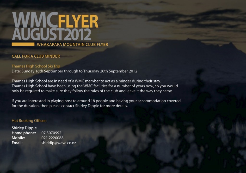 Please find the latest flyer attached with a message from our Hut Booking Officer.